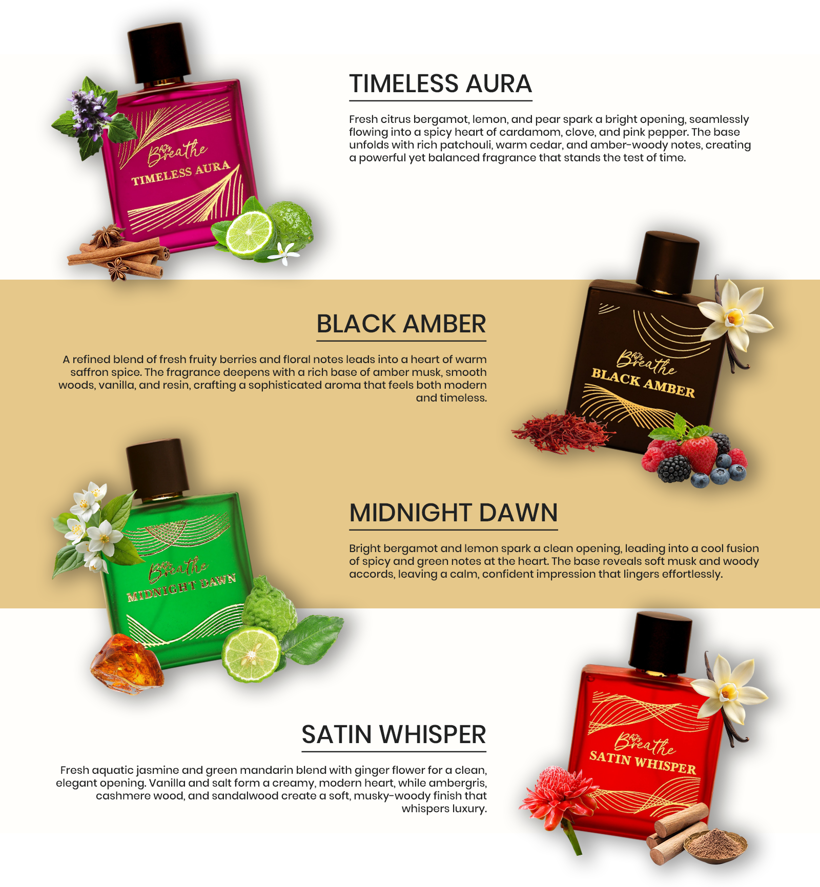 Breathe Perfumes blends modern perfumery with lasting character, made for those who leave a mark.